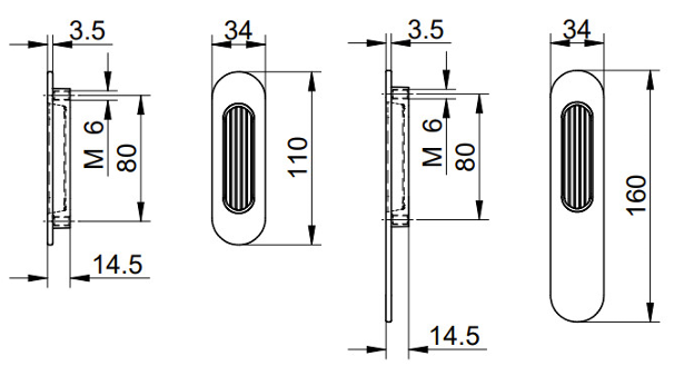 available in two sizes: short (110 x 34 x 14.5 mm) and long (160 x 34 x 14.5 mm)
